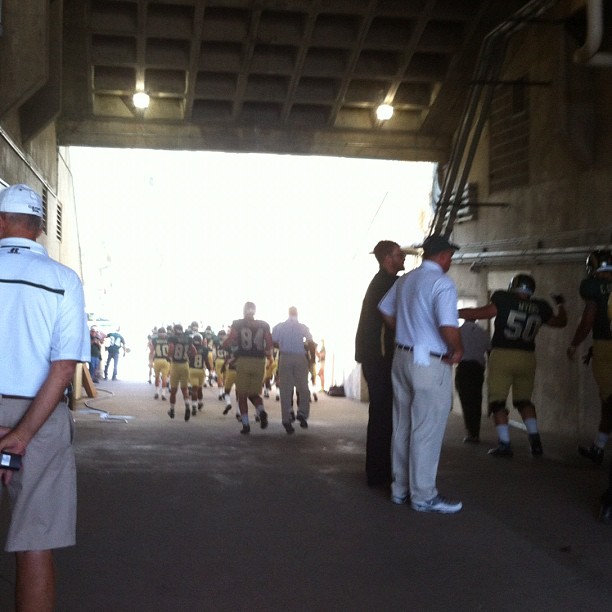 I actually didn’t get to watch the whole game, although I was there for fifteen hours. Did y’all notice all those people in yellow shirts keeping the peace? Givin ya a sweet pat down when you came in the game? I was in charge of them! …and when I say in charge, I really mean I just hand out those lovely yellow shirts. It was a long day, but there were a few parts that made it seem not so bad. It wasn’t the first time I’ve been here, but being stationed in the tunnel right next to the locker room won’t get old anytime soon.