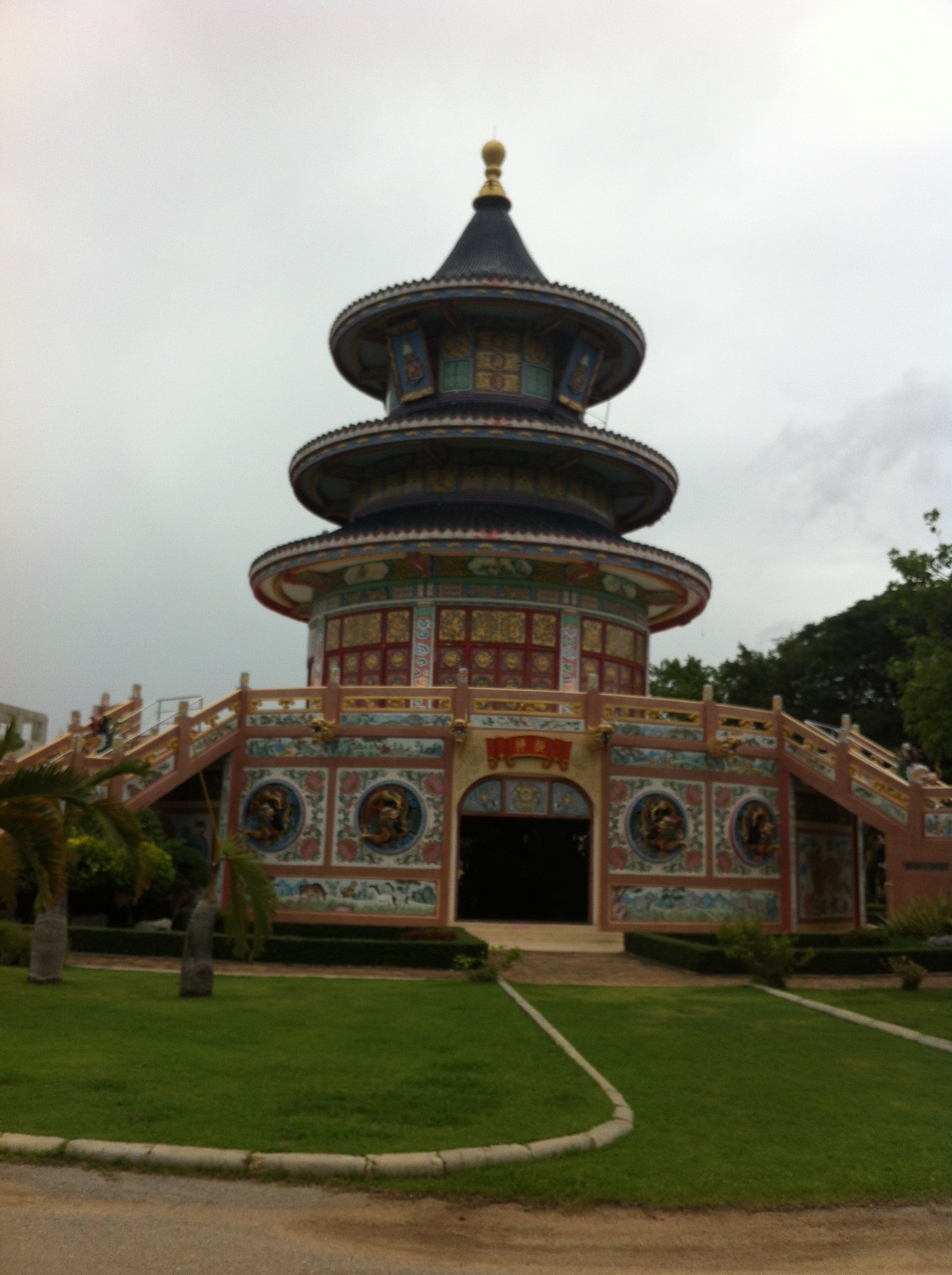 After a fortifying cuppa (free with admission!), we hopped back on out bikes. We were riding along and stumbled upon this little open-air, isolated temple on the river bank with hardly anybody but us there.