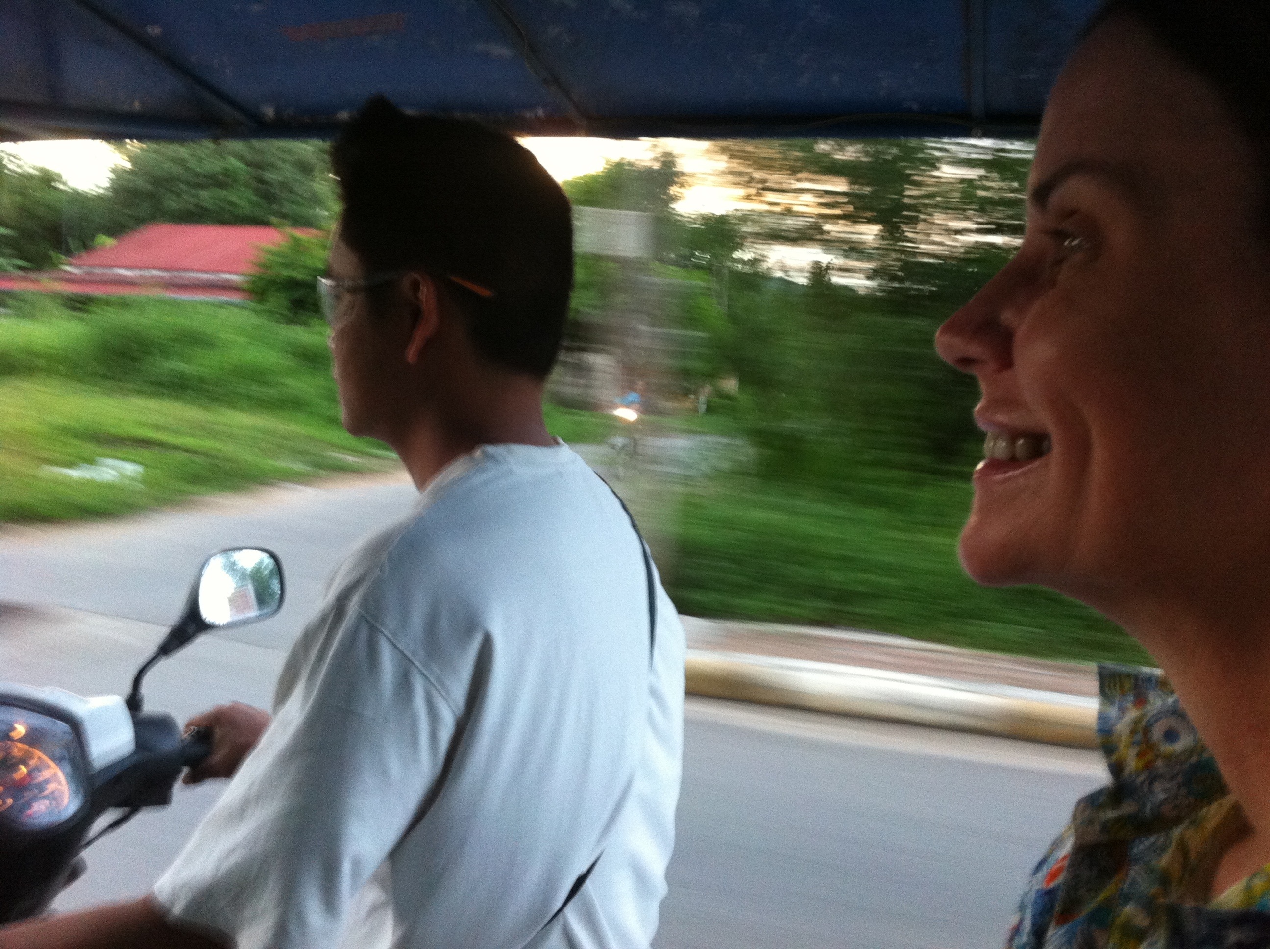 That evening, we had the hotel call a taxi for us – which happened to be a moto-taxi! Basically a motorcycle with bench for a sidecar. Not for the faint-hearted.
