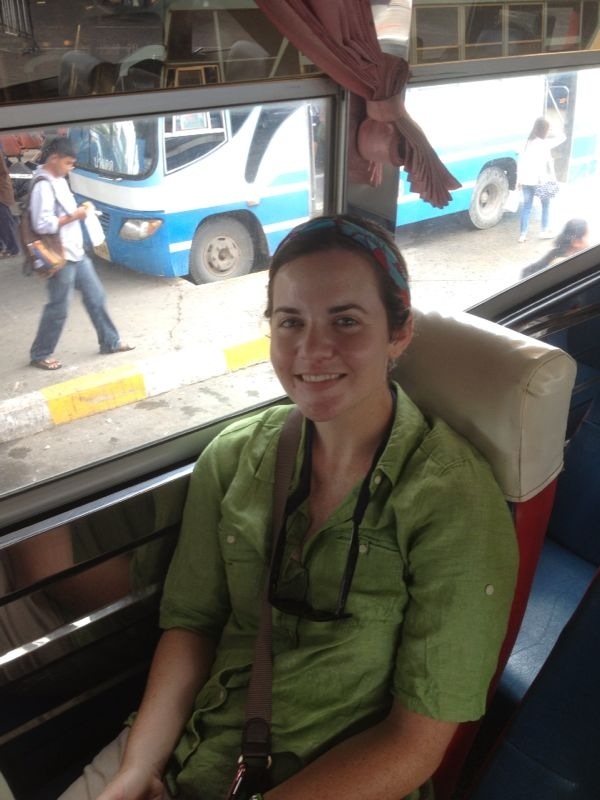 Next we hopped a bus to Chiang Khan, which was a little more rustic than the last bus we were on. It dropped us off in an alley and roared off. We asked twice before we finally hailed a bicycle tuk-tuk to take us to Thai immigration office, where we got exit stamps on our passports.