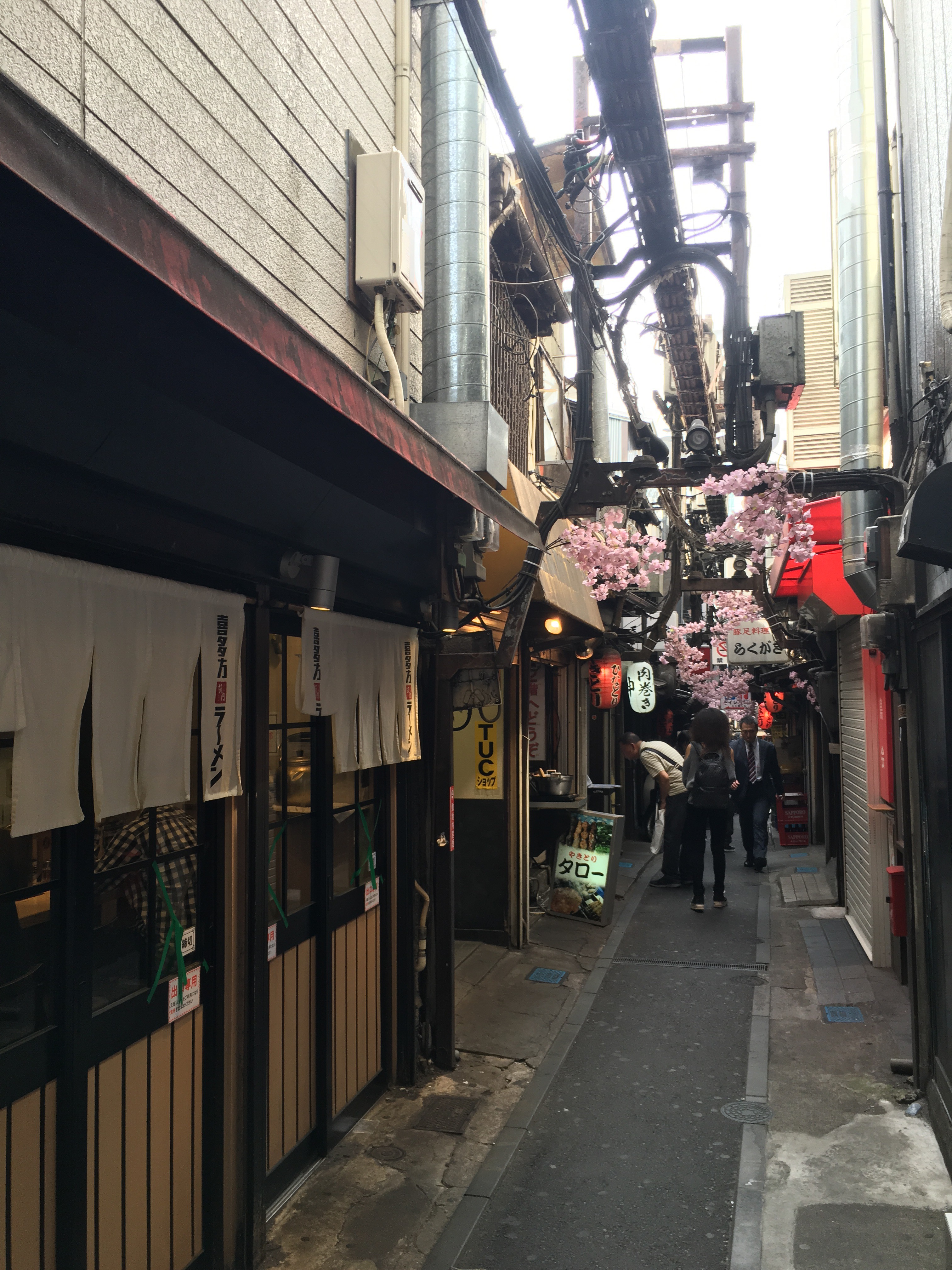 Full after lunch, we tried to find the “scramble,” this crazy pedestrian intersection in the Shibuya area. We ended up walking around a commercial area, just soaking it all in. We happened upon a network of these small alley-like streets with tiny little restaurant, tucked in less than a block away from giant buildings and shopping centers.