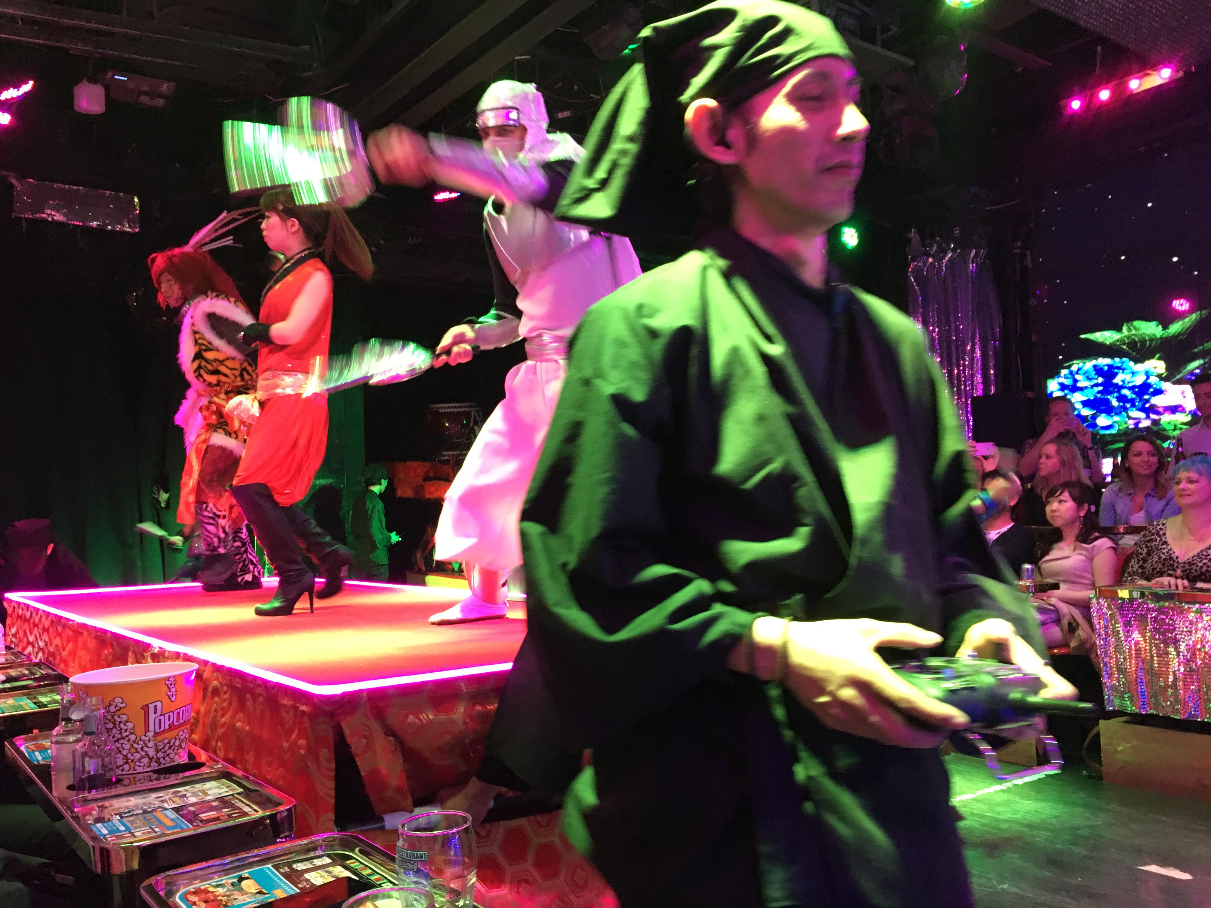 We hung out here for a while, until it was time for the show to begin. We were lead back downstairs to a large room with a runway down the middle. Turns out, we had front row seats. A ringleader instructed us to not touch the robots and to “make a dodge!” if something is heading your way. This is about the time I lose words to accurately describe the pure bonkers-ness of this experience. There is lasers, smoke and explosions. There are “savages” playing giant bongo drums, there is a whole story line where a race of robot aliens is trying to take over a peaceful planet of cute robot animal friends. A robot shark and monkey battled a robot alien mistress with lasers coming out of their mouth and eyes. There were breakdancers in trippy black lights, there were musical numbers and strange voice overs and at one point they bought out a chain fence and put it in front of us to contain the robots (??). There was also a strange zebra-ception vignette, where a zebra was carrying a blow up zebra on it’s shoulders while riding a robot zebra. I don’t think words can even do this place justice.