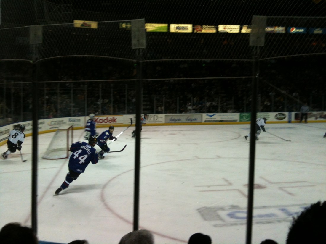 But we did recognize the Eagles owner, Mr. Backstrom, and the aforementioned Assistant Coach “Greatest Temper Tantrum by an Adult in Public Ever” Pankewicz. Let me set the scene: A bar, a band just started playing, and a lot of people – fans, groupies and drunks. So we spot the owner and head over to shake his hand – I was so nervous! How do you tell somebody you hope to be as rich as him someday and by the way is he in the market for a young personal assistant or intern/chauffer or anyyyything? – so I panicked and just said “great game!” He said (he is an older gentleman and remember that band is playing not twenty feet away from us) something I couldn’t hear but kind of gestured to the assistant coach sitting next to him. I assumed it was “oh I had nothing to do with it” or something more eloquent than just the “nope” I thought he said at the time. So he gestures to Coach Pankewicz and I make the move to shake his hand and then one of those oh this will be hilarious! ideas popped into my head so I lean in and go “Nice to meet you! I’m really looking forward to you taking all your clothes off on the ice again this season.”